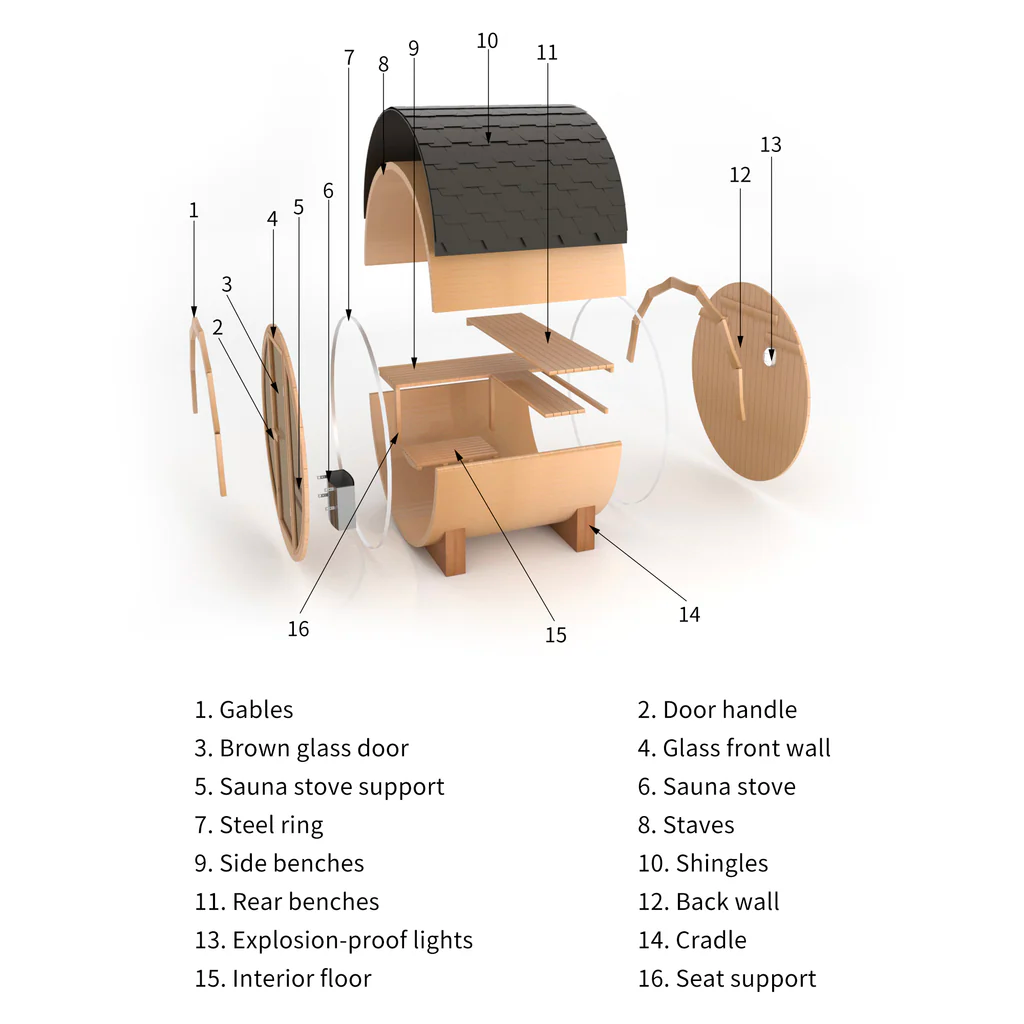 Carefully handcrafted by the most gifted woodworkers in Saunasnet, the 2-3 Person Outdoor Barrel Sauna has been engineered in a unique way allowing it's users to enjoy the sauna while admiring a beautiful landscape from the tinted full glass front.